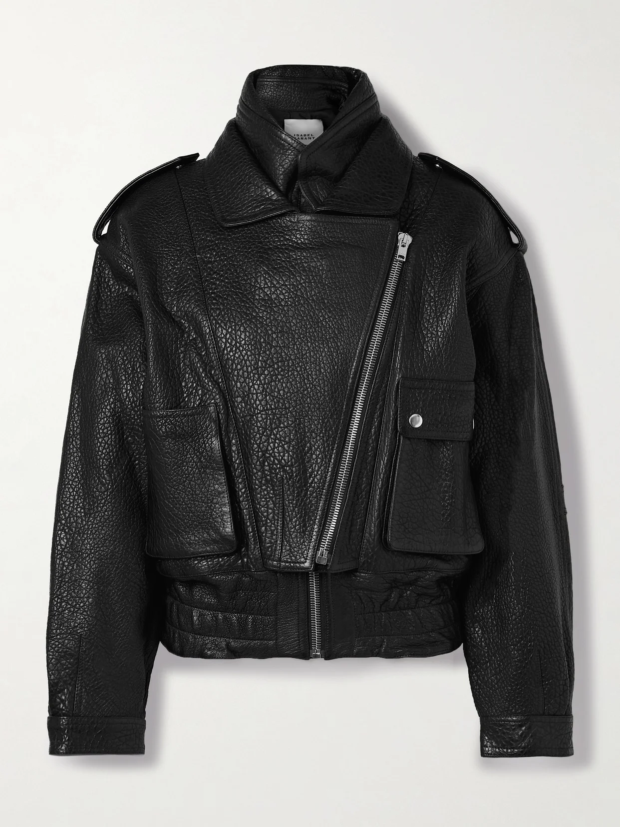 Isabel Marant's 'Aneli' jacket riffs on classic biker styles. It's made from black leather that's heavily textured and has a high collar. It'll add a chic, edgy feel to any outfit.
