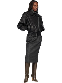 Grained lambskin jacket. · Layered spread collars · Layered zip closures · Flap and patch pockets · Elasticized hem · Epaulets · Buttoned barrel cuffs · Zip pocket at interior · Fully lined Supplier color: Black Body: 100% lambskin. Fill: 100% polyester. Lining: 100% cotton. Made in India 261600F064000