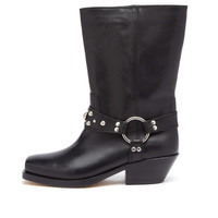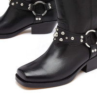 Offering a sleek and clean look, the Isabel Marant Antya boots exude modern luxury. Exquisitely crafted from calf leather, it features a square toe, silver-toned hardware, cuban heel and stud-embellished harness with debossed logo detail at the back. Delivery a classic style with distinct touches, it will be sure to add elevated edge to any look. - 100% Calf Leather - Square Toe - Silver-Toned Hardware - Stud-Embellished Harness - Cuban Heel - Debossed Branding - Made in Portugal