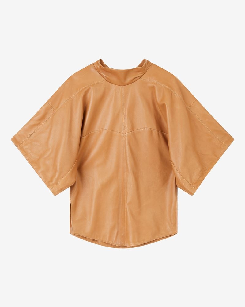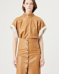 Lamb leather shirt with short sleeves Back button closure The model is wearing a size FR 36 and she is 1m77 Reference : HT2362-22A004I BAIAO 100% Lambskin FITTING ADVICE Fits true to size