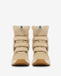 High-top leather wedge sneakers Multiple materials: smooth leather and suede calfskin leather Round toes Velcro straps Padded tongue Woven label with contrasting "Marant" logo Contrasting side yokes Soft leather insoles and lining Rubber outsoles Hidden heel height: 5 cm / 2 in. Sole height: 4 cm / 1.6 in. Style: BK0009FA-A3E46S BALSKEE 100% bovine leather