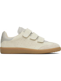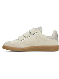 Low-top suede sneakers. · Serrated edges throughout · Perforated detailing at toe and sides · Velcro closure · Padded tongue and collar · Logo stamp at heel tab · Terrycloth lining · Treaded rubber sole Supplier color: Ecru Upper: leather. Sole: rubber. Made in Portugal 252600F128001