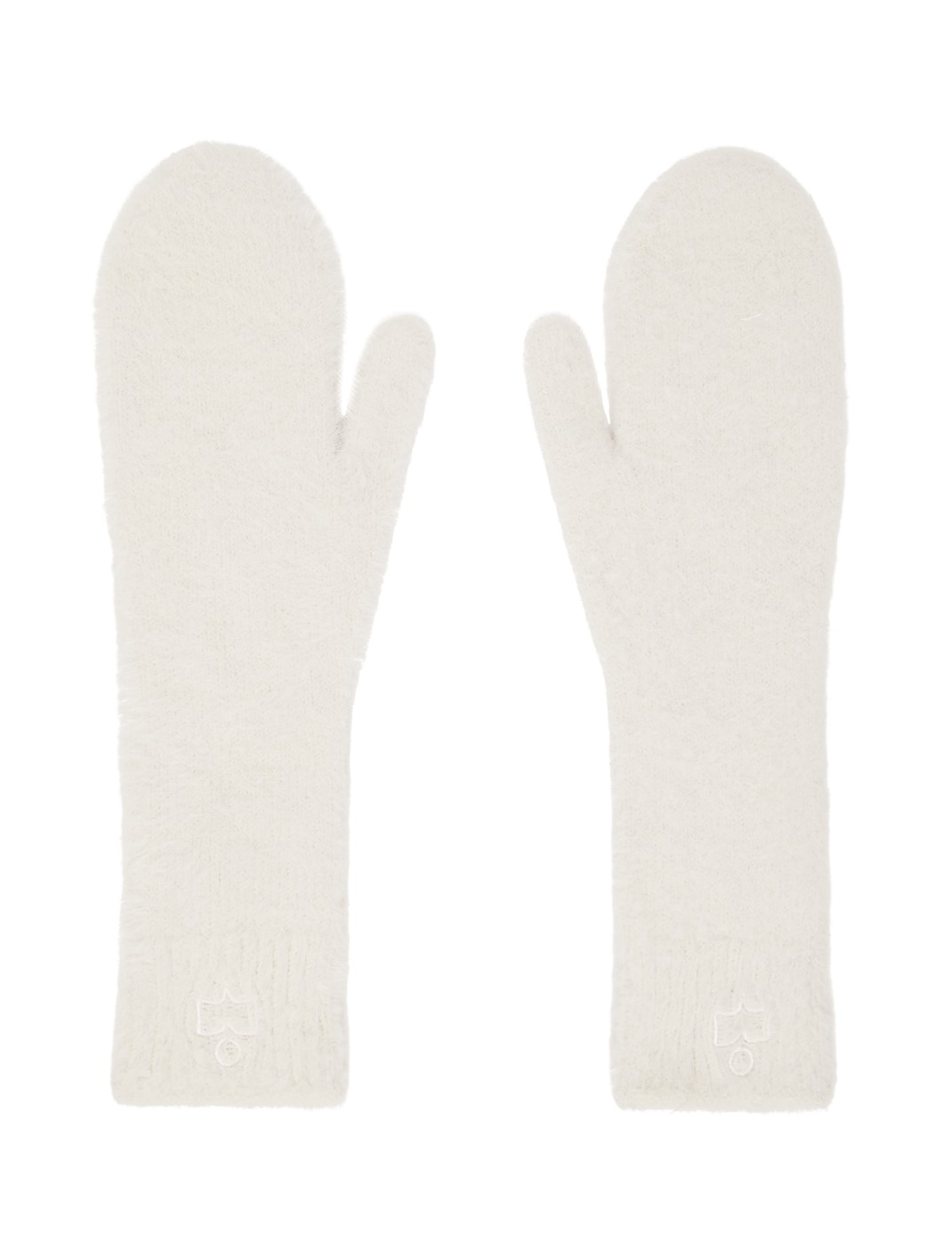 Brushed knit nylon gloves in beige. Logo embroidered at rib knit cuffs. Supplier color: Ecru 100% polyamide. Made in Italy 232600F012001