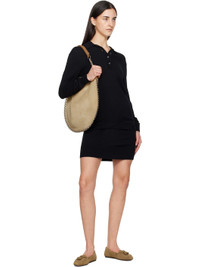 Calfskin suede shoulder bag. · Buffed leather trim and metal eyelets throughout · Whipstitching at rolled shoulder strap · Logo embossed at face · Magnetic closure · Detachable zip pouch at interior · Cotton twill lining · Silver-tone hardware · H15" x W16" x D2" Supplier color: Sand Body 1: 100% calfskin. Body 2: 100% leather. Lining: 100% cotton. Made in Tunisia 261600F048003