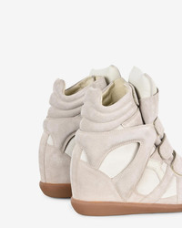Leather wedge sneakers Multiple materials: lambskin leather and suede calfskin leather Round toes Velcro straps Padded tongue Woven label with a contrasting "Marant" logo Side yokes Soft leather insoles and lining Rubber outsoles Heel height: 5 cm / 2 in. Style: BK0010FAA1E19S23EC BEKETT 100% calfskin leather