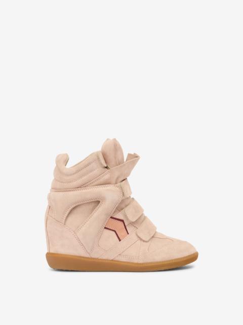 Calfskin leather and suede calfskin leather wedge sneakers Round toes Velcro straps Padded tongues "Bisous d'Isabel Marant" printed on the side Soft leather insoles and lining Rubber outsoles Heel height: 5 cm / 2 in. Style: BK0010FAB1E09SPIPH BEKETT 55% suede bovine leather, 45% bovine leather Care & Sustainability the history and environmental impact of this product