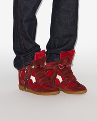 Suede leather wedge sneakers Round toes Velcro straps Padded tongues Straps with decorative pendants Contrasting side yokes Soft leather insoles and lining Rubber outsoles Heel height: 5 cm / 2 in. Style: BK0010FB-C4E02S BEKETT 100% suede calfskin leather
