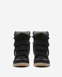 Leather wedge sneakers Multiple materials: lambskin leather and suede calfskin leather Round toes Velcro straps Padded tongue Woven label with a contrasting "Marant" logo Side yokes Soft leather insoles and lining Rubber outsoles Heel height: 5 cm / 2 in. Style: BK0010FAA1E19S01BK BEKETT 100% calfskin leather