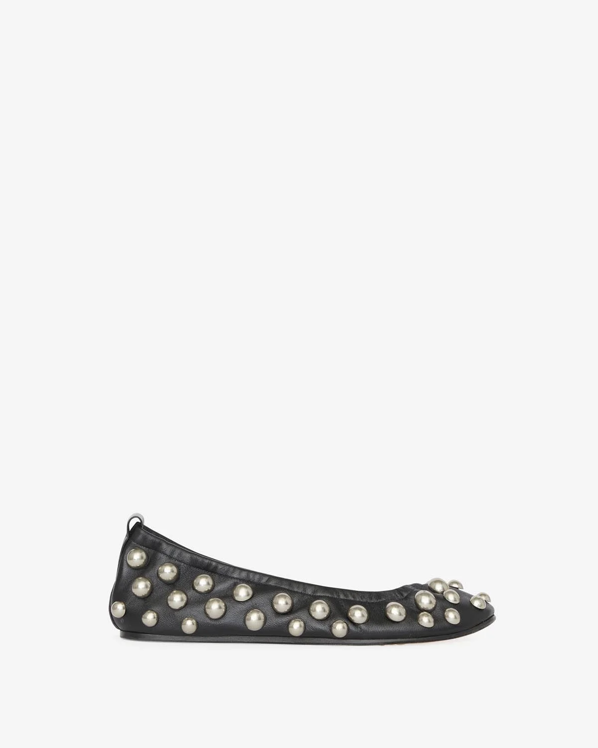 Studded ballet flats Lambskin leather Round toes Pull tab in back Flat outsoles Soft leather insoles Soft leather lining Silver metal details Style: BN0005FA-B3A05S BELNA 100% lambskin leather