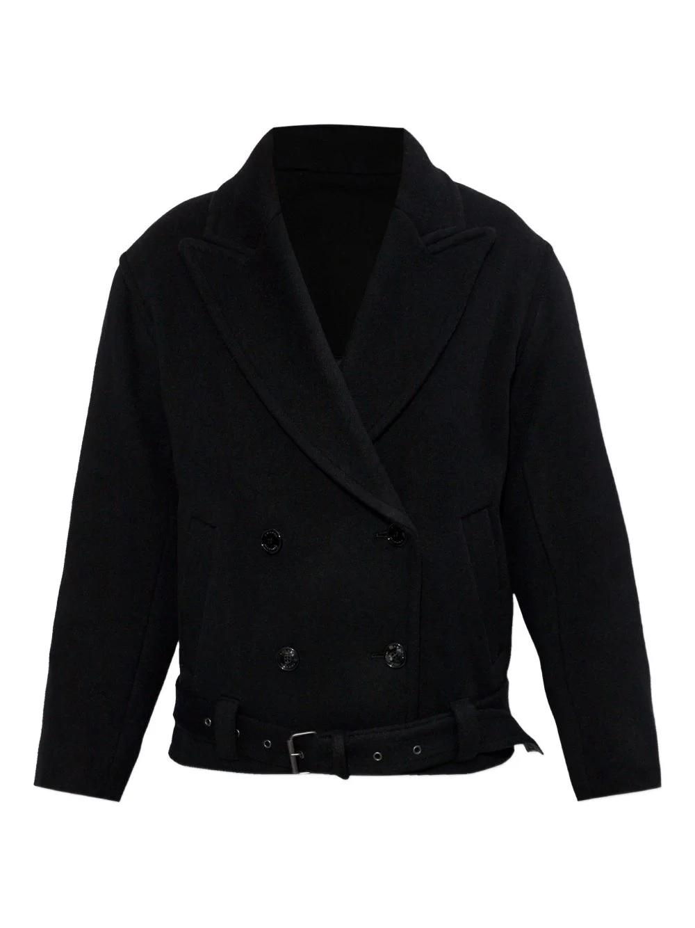 belted double-breasted jacket Highlights - Black - Belt - Double-breasted - Lapel collar - Button fastening - Short length Imported Composition Virgin Wool 100% Washing instructions Read Manufacturer Guidelines