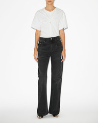 Bootcut jeans in flowing denim Fitted waistband with loops Engraved metal button tab with a zipper 5 classic pockets Leather label in back with an "Isabel Marant" logo Metal rivets Silver-finish metal details Medium-rise waist Style: PA0002FDB1H07I02FK BELVIRA 77% Lyocell, 23% cotton