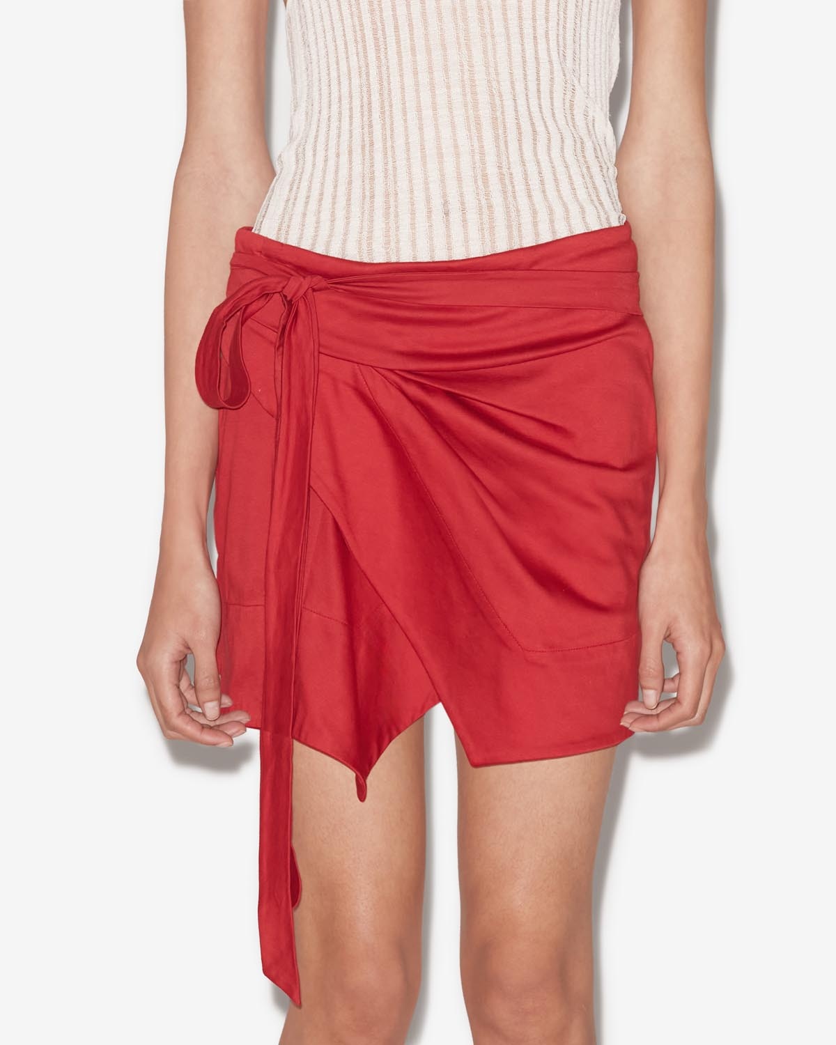 100% cotton Short skirt in plain-colored cotton Wrap style Low-rise waist Adjustable bow Style: JU0198FD-B2K01I BERENICE