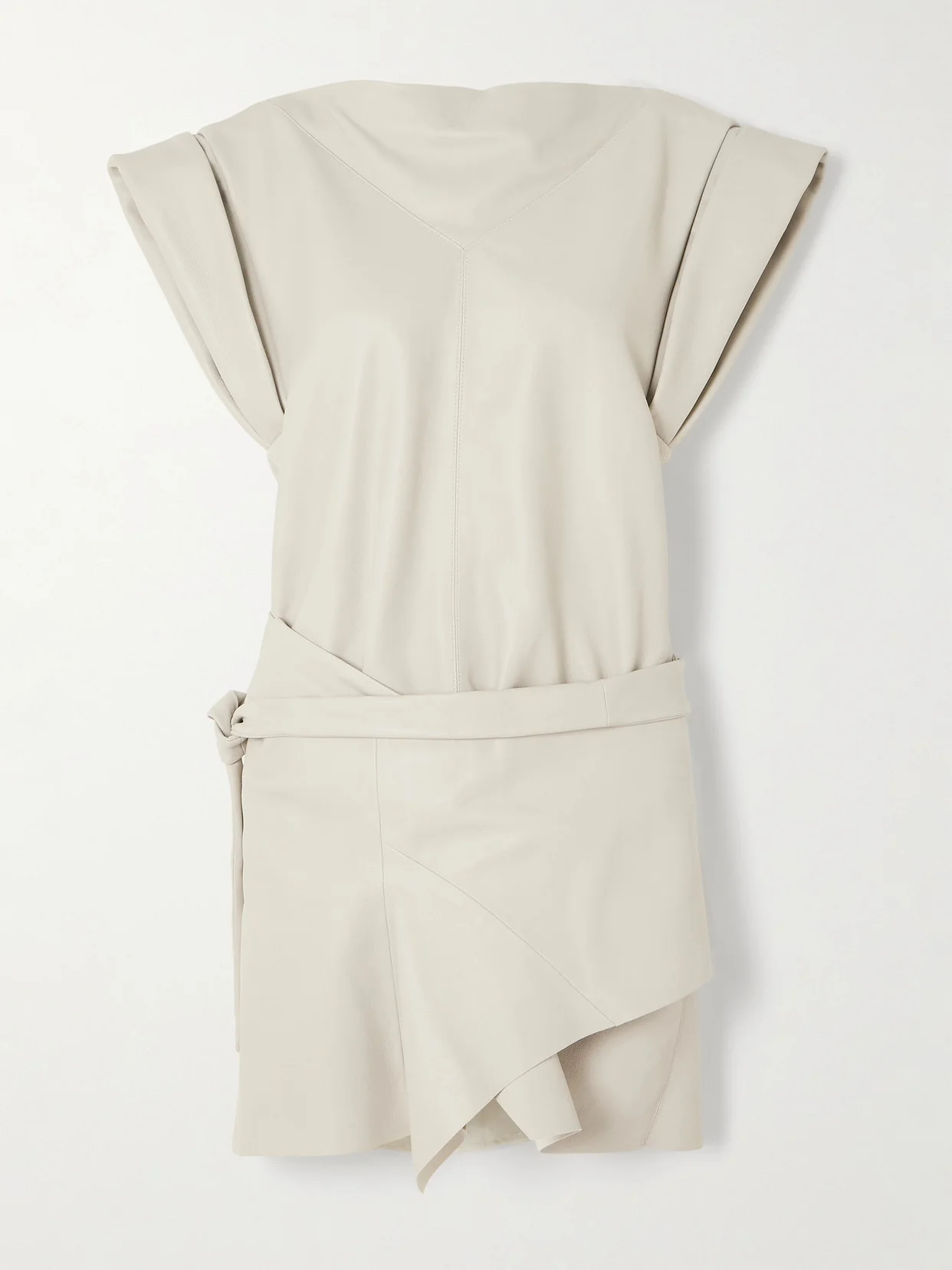 Bernadette Belted Asymmetric Wrap-effect Leather Mini Dress