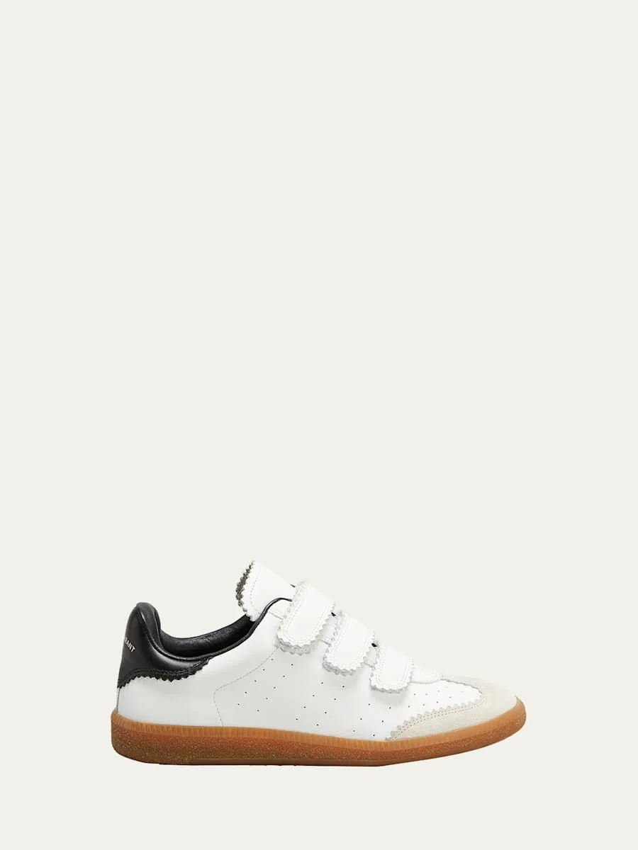 Isabel Marant leather and suede sneakers. Flat textured heel. Round cap toe. Triple grip strap vamp. Contrast collar, tongue and logo. Leather lining. Rubber outsole. "Beth" is made in Portugal. Online Inquiries: BGS21_X4P5P| Store Inquiries: #2924100