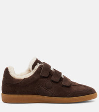 Each Isabel Marant piece blends refined design with effortless looks for daily life. Finished with VELCRO® straps, the Beth suede sneakers feature soft shearling trims and linings, and are detailed with the signature IM initials at the sides. Product Details - Upper: cow leather (suede) - Lining: shearling - Sole: shearling insole, rubber sole - Toe shape: round toe - Made in Portugal - Includes: dust bag, shoe box - Designer color name: Chocolate - Item color: brown, beige - Closure: VELCRO® fastening - Item number: P01070669 Size & Fit - True to size - Slightly narrow - Half sizes please take the next size up - European sizes - 2cm-1" platform (size EU 38) - 3cm-1" wedge heel (size EU 38)