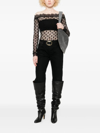 black floral lace off-the-shoulder neckline long sleeves straight hem - Color: BLACK - Made in: Portugal - Designer Style ID: C4J06I HT0730FA 01BK Composition and care Polyamide: 88.0%, Elastane: 12.0%