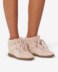 Perforated suede wedge sneakers Round toes Laces Serrated finishes Soft leather insoles and lining Rubber outsoles Heel height: 5 cm / 2 in. Style: BK0011FAA1E20S40PI BOBBY 100% bovine leather Care & Sustainability the history and environmental impact of this product