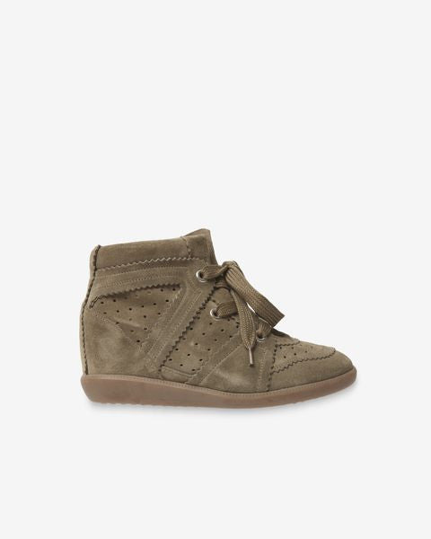100% calf velvet leather Round toe suede sneakers Lace-up front fastening Concealed wedge heel Rubber solde Style: BK0003-00M102S BOBBY
