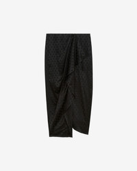 Long silk jacquard polka dot print skirt Draped front Done up in back with a hidden zipper Asymmetrical length Straight and flowing cut Style: JU0456FA-C4J04I BREEN 90% silk, 10% elastane