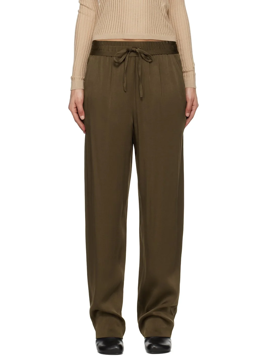 Viscose-blend satin crepe lounge pants. · Drawstring at elasticized waistband · Four-pocket styling Supplier color: Bronze 54% viscose, 46% acetate. Made in Romania 251600F086000