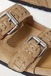 EDITORS'NOTES Isabel Marant's 'Lennyo' slides are cult favorites. This version is made from braided suede in a neutral tan shade that'll go with so many different outfits. They're topped with signature buckles and have smooth leather soles. SIZE & FIT - Fits true to size, take your normal size - Only available in full sizes, go up to the nearest whole size if you take a half size - French sizing DETAILS & CARE - Sole measures approximately 25mm/ 1 inch - Tan suede (Calf) - Buckle-fastening straps