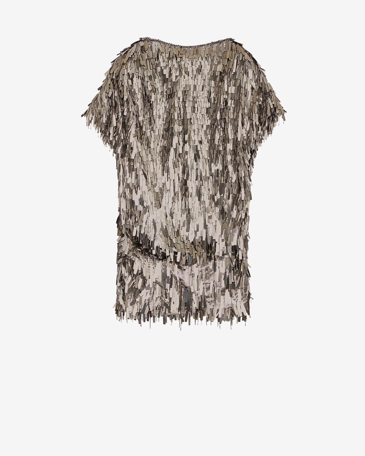 63% silk, 37% polyester Short dress with short sleeves Closed collar Artisanal sequin embroidery Silk lining Style: RO0453FA-B2J11I CARLA
