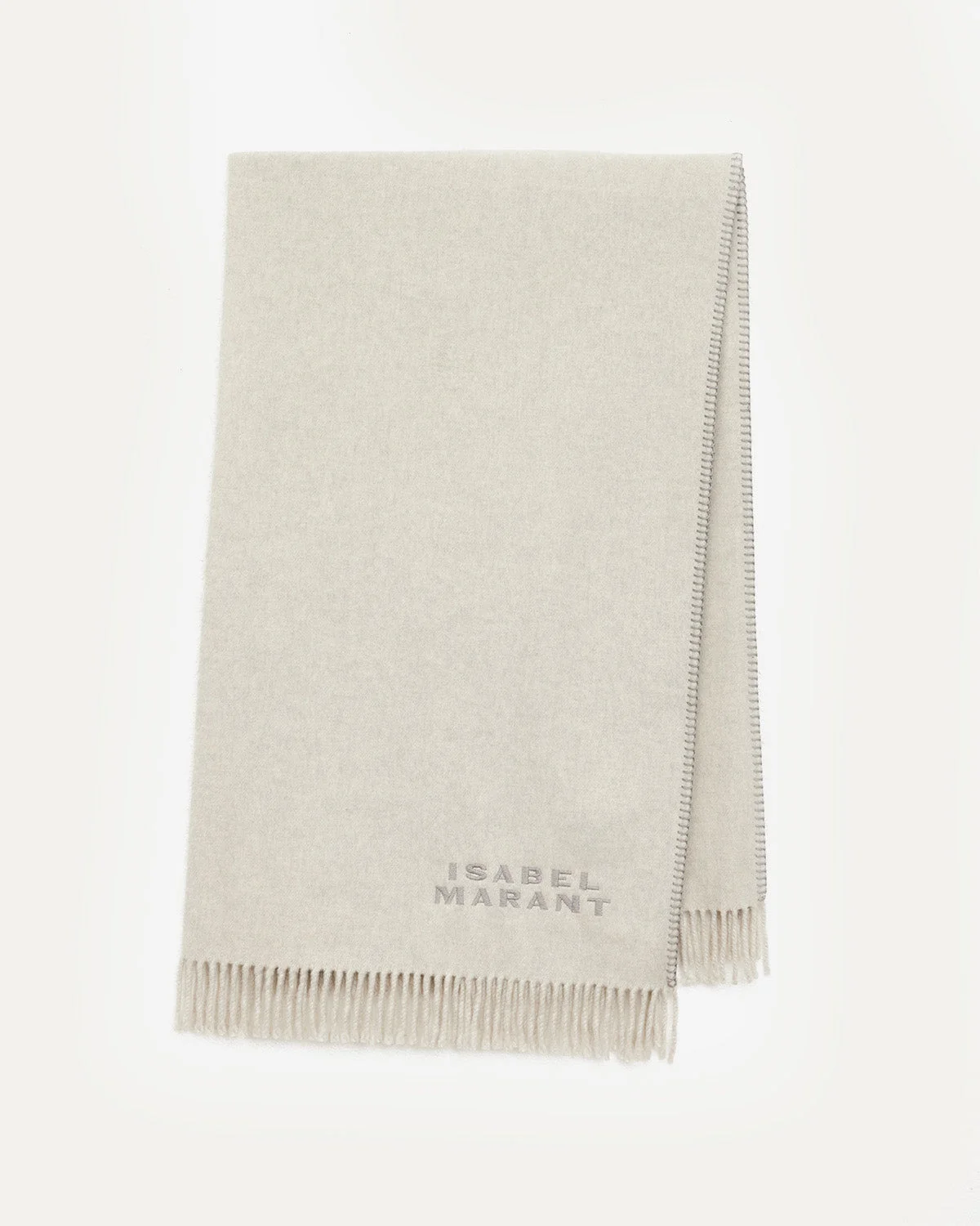 Mottled wool shawl Hand-crafted style "Isabel Marant" embroidery on the base Fringed trim and saddle stitch embroidery on the sides Rectangular shape: 110 x 200 cm / 43 x 86 in. Style: EC126XFA-C4C02A CARMEL 100% wool
