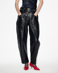 Lambskin leather pants Fitted waistband with loops Done up with visible snap buttons and a zipper Zippered side pockets with quilted leather yokes Patch pockets on the back Antique gold-finish metal details Medium-rise waist Relaxed straight cut Style: PA0369FA-B3B02I CATARINA 100% lambskin leather