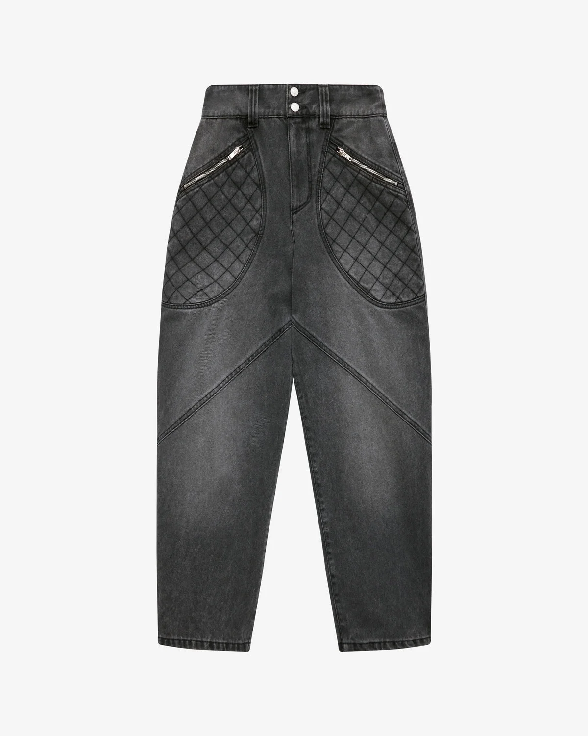 Denim jeans with quilted details Fitted waistband with loops Done up with visible snap buttons and a zipper Zippered side pockets with quilted yokes Patch pockets on the back Silver metal details Medium-rise waist Relaxed straight cut Style: PA0369FB-B3H02I CATARINA 100% cotton