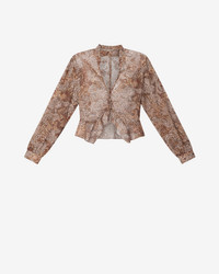 Floral print cotton voile blouse Cropped cut Plunging V-neckline Frilly collar Done up in front with covered buttons Long sleeves Cuffs with a covered button Adjustable buttoned rear waist Ruffled finish Style: HT0868FAD2J07I10OE 100% cotton Care & Sustainability Machine wash on a gentle cycle, inside out and at a maximum temperature of 30°C For more details, see the instructions on the composition label the history and environmental impact of this product