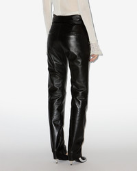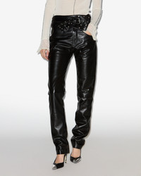 Fitted leather pants Wide adjustable belt Buttoned Side pockets and piped back pockets Metal rivets Slim fit Style: PA0633FA-C4B01I CHAZIA 100% lambskin leather