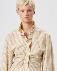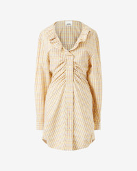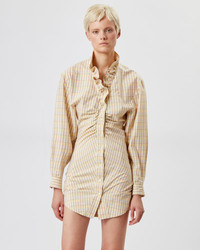 Checked silk dress with long sleeves Front and neck ruffles Front button tab Reference: RO0066FB-A1I27I CORAL 54% Silk, 46% Cotton FITTING ADVICE Fits true to size The model is wearing a size FR 38 and she is 1m77 (5'9")