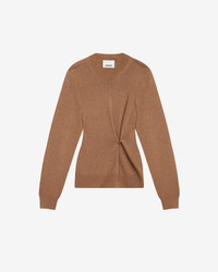 Draped knit sweater Round neckline Long sleeves Twisted front with brooch Gold-finish metal brooch with an "Isabel Marant" engraving Ribbed finishes Fitted cut Style: PU0638FAC1L04I50CM COSIMA 70% viscose, 30% RWS wool