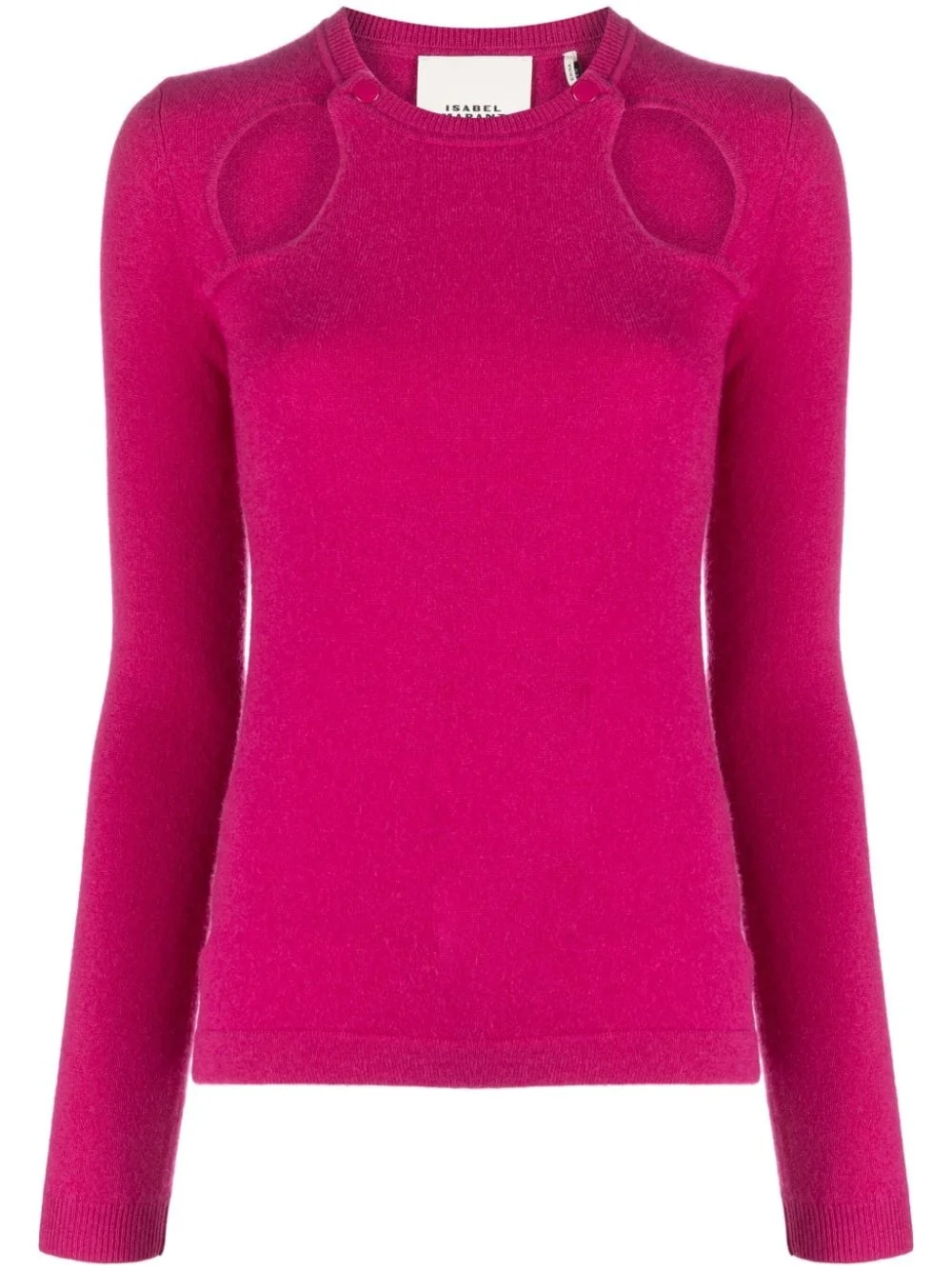 Velen cut-out cashmere top Isabel Marant showcases its eye for detail with this jumper. Crafted from cashmere, it features cut-outs at the front. Highlights - Raspberry pink - Cashmere - Knitted construction - Cut-out detailing - Round neck - Long sleeves Imported Composition Cashmere 100% SIZE & FIT Model measurements Height 5 ft 10 in(1.78 m) Bust/Chest 33.46 in(85 cm) Hips 36.22 in(92 cm) Waist 23.22 in(59 cm) FittingInformation Designed for a slim fit that sits just away from the body offering a close yet comfortable fit Made with a midweight knit, this piece offers some stretch This piece fits true to size – take your usual size Washing instructions Hand Wash