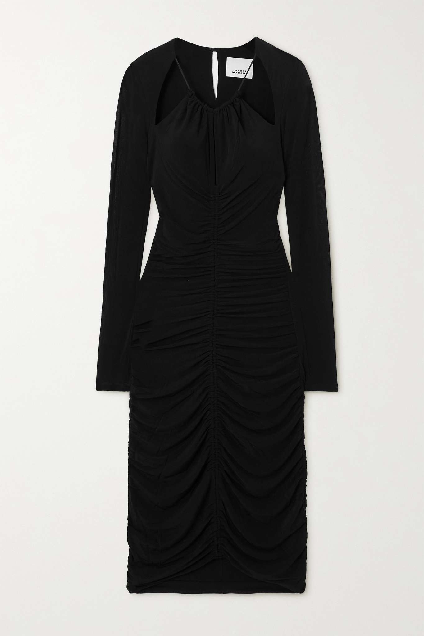 EDITORS'NOTES You can never have too many black dresses. Softly ruched, Isabel Marant's 'Logane' style is made from fluid stretch-jersey and has chic cutouts. Wear it with your favorite strappy sandals. SIZE & FIT - Fits true to size, however those who are between sizes should take the smaller size - Designed for a close fit - Lightweight, non-stretchy fabric - Model is 175cm/ 5'9" and is wearing a FR 36 DETAILS & CARE - Black stretch-jersey - Button fastening keyhole at back - 92% viscose, 8% elastane - Hand wash