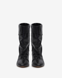 Draped boots in calfskin leather Soft turn-down uppers Pointed toes Laminated leather cone heels Soft leather insoles and outsoles Soft leather lining Heel height: 5.5 cm / 2.2 in. Style: BO0188FAC1A19S01BK DALBY 100% calfskin leather