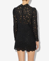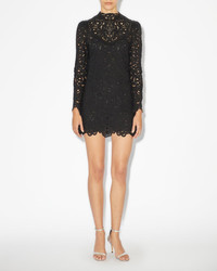 100% ramie, cotton Ramie short dress with long sleeves Allover Floral guipure embroidery Slightly high neck Back zip closure Comes with an underdress Style: RO0378FAB1J11I01BK DAPHNE