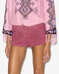 Soft laced suede leather shorts Fitted waistband with loops Laces in front Slant pockets on the sides Topstitched and patinated finishes Silver-finish metal details Low-rise waist Mini length Style: SH0219FCC2B03I40RY DELMA 100% suede goat leather