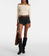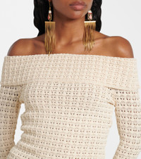 Inspired by Parisian style, each Isabel Marant piece blends refined design with effortless looks for daily life. The Dermottega top features a crochet design with a charming off-shoulder, fitted silhouette. Product Details - Material: 68% viscose, 32% polyamide - Care instructions: hand wash - Made in China - Designer color name: Ecru - Item color: beige - Item number: P01074400 Size & Fit - True to size - Off-the-shoulder - Semi-sheer - Fitted - Stretchy fabric - Falls to the hip - The model seen in the picture is 178cm-5'10" and wearing a size FR 36