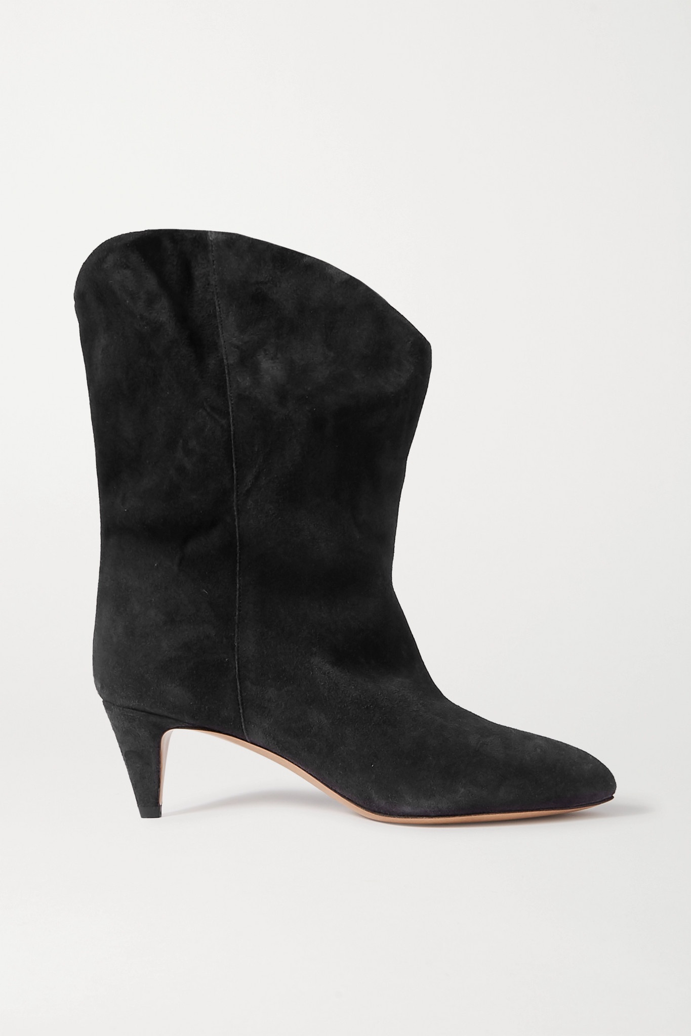 EDITORS'NOTES Slouchy Western-inspired boots have been a mainstay in Isabel Marant's collections for years, but they just so happen to be one of this season's biggest trends, too. This 'Dernee' pair is Italian-made from soft black suede and has loose-fitting cuffs that bunch at the ankles.<br><br>Shown here with: [Chloé Skirt id1201680], [Isabel Marant Étoile Top id1198616], [Chloé Shoulder bag id1188534], [Laura Lombardi Necklace id1129360]. SIZE & FIT - Fits true to size, take your normal size - Only available in full sizes, go up to the nearest whole size if you take a half size - French sizing DETAILS & CARE - Heel measures approximately 50mm/ 2 inches - Black suede (Calf) - Pull on - Made in Italy