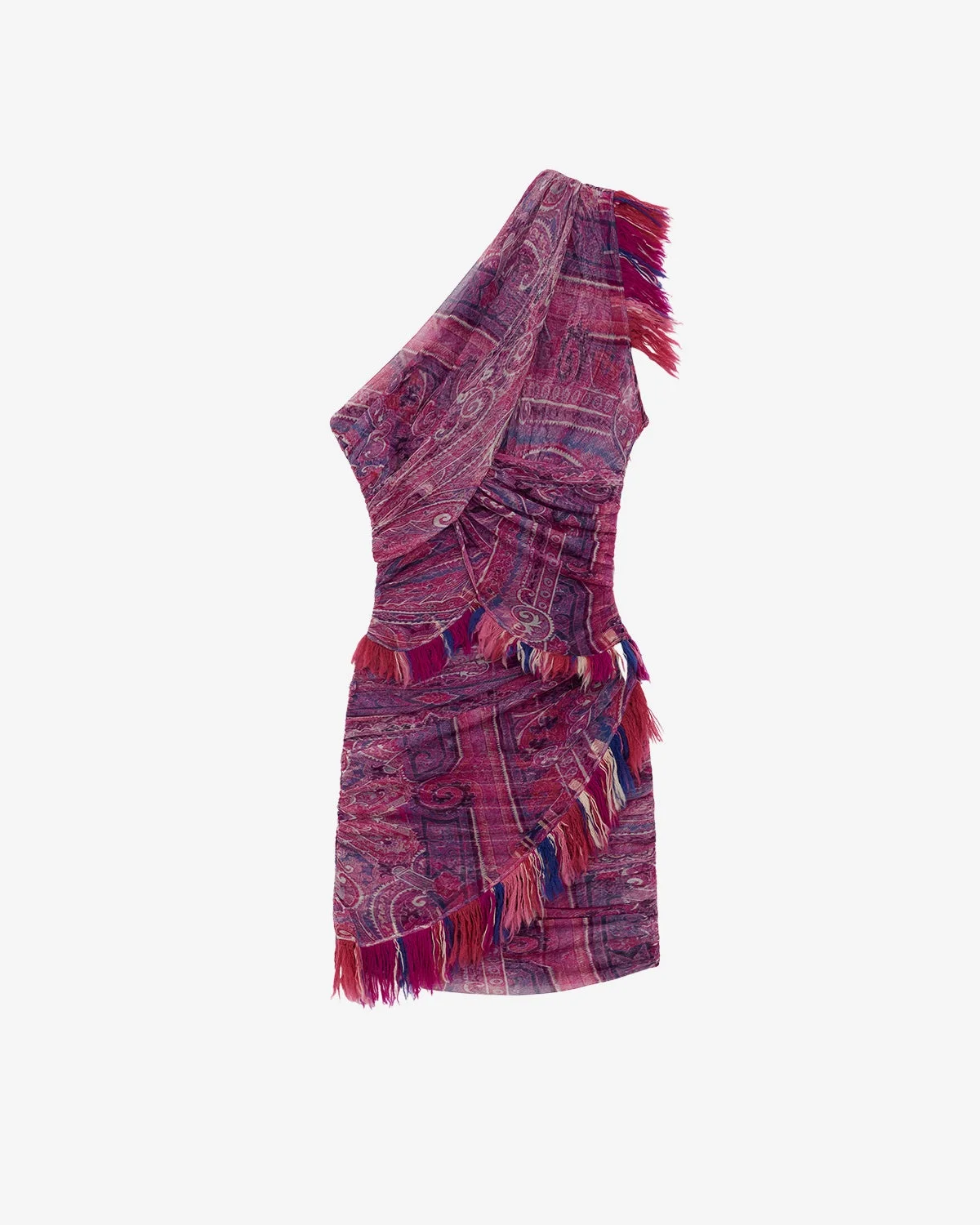 Strappy dress in gathered printed silk Bandeau top with silk straps Openwork in front Gathered front and back Matching woven silk finishes Gold-finish metal beads Done up on the side with a hidden zipper Flowing skirt with gathered tails Long and fitted Style: RO0758FAC2J05I40PK RAFAEL 100% silk