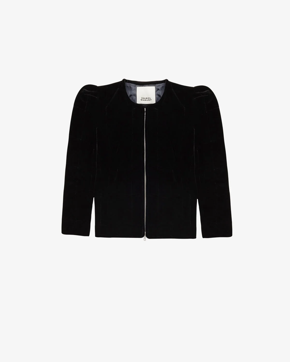 Short jacket in quilted plain-colored velvet Round neckline Structured shoulders 3/4 sleeves Done up with a visible, two-way, silver-finish metal zipper Satin lining Fitted cut Style: VE0385FA-B3E02I DJANET 82% viscose, 18% silk