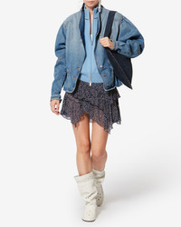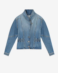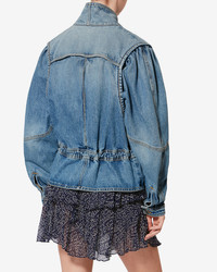 Cotton denim jacket Crossover buttoned collar Crossover front with metal buttons Reinforced buttonhole Gathered shoulders Long sleeves Side pockets Pleat in back Cropped cut, tightened at the waist Style: VE0614FAD1H02I30LU DOLIE 100% cotton Care & Sustainability Machine wash on a gentle cycle, inside out and at a maximum temperature of 30°C For more details, see the instructions on the composition label