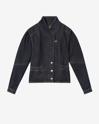 Cotton denim jacket Crossover buttoned collar Crossover front with metal buttons Reinforced buttonhole Gathered shoulders Long sleeves Side pockets Pleat in back Cropped cut, tightened at the waist Style: VE0614FAD1H02I30DM DOLIE 100% cotton Care & Sustainability Machine wash on a gentle cycle, inside out and at a maximum temperature of 30°C For more details, see the instructions on the composition label