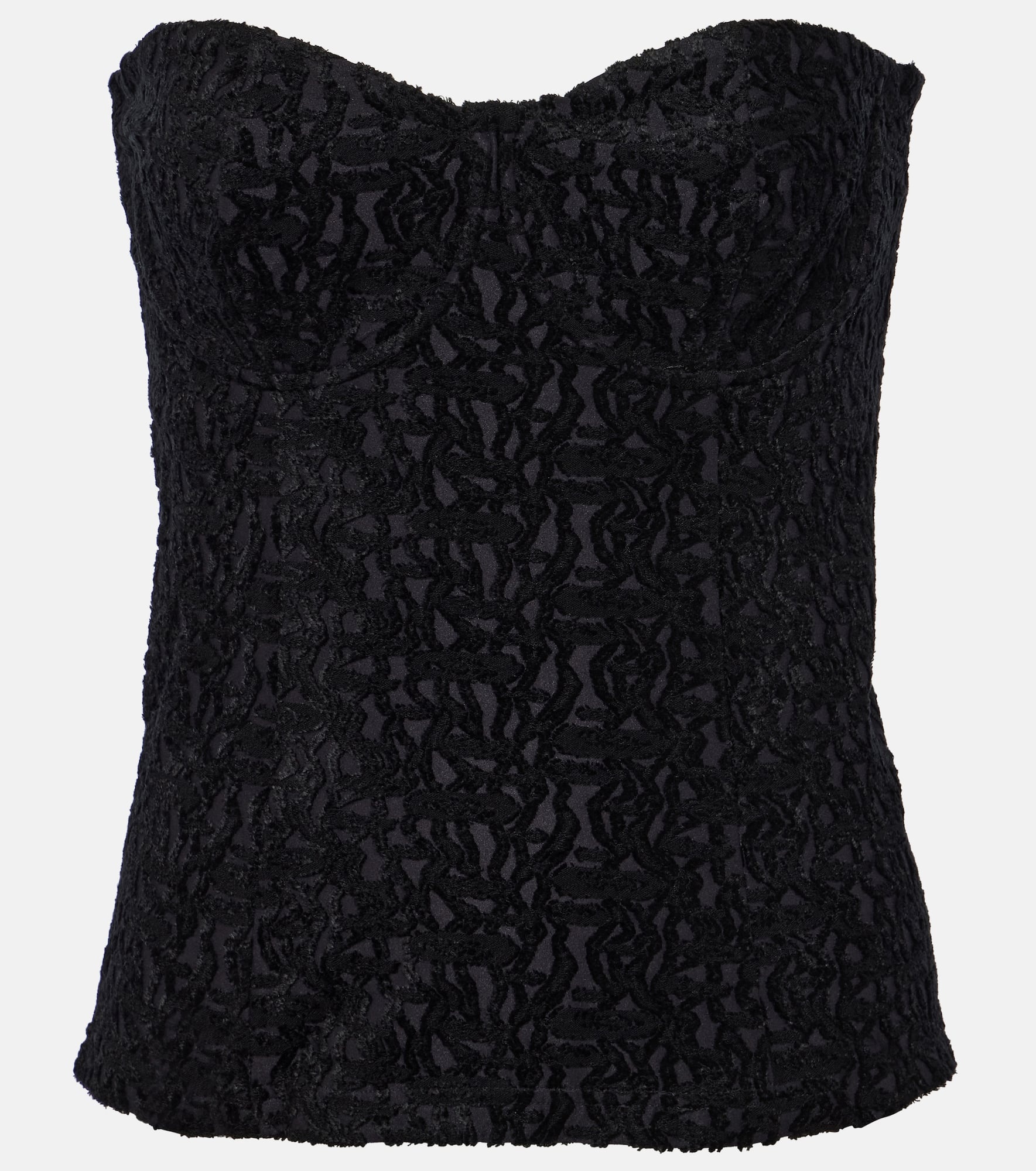 Capture Isabel Marant’s effortless elegance in the Dolina strapless top. Expertly crafted from black textured fabric boasting an artful design, it features a bustier silhouette with supportive underwired cups. Product Details - Material: 51% viscose, 32% polyamide, 17% elastane - Closure: zipped back - Material III: 88% viscose, 12% polyester - Care instructions: hand wash - Made in Poland - Designer color name: Black - Lining: 56% polyamide, 44% elastane - Details: 100% cotton - Material II: 99% polyamide, 1% elastane - Item number: P00841127 Size & Fit - True to size - Strapless - Fitted - Underwired top - Mid-weight material - Stretchy fabric - Falls to the hip - The model seen in the picture is 178cm-5'10" and wearing a size FR 36