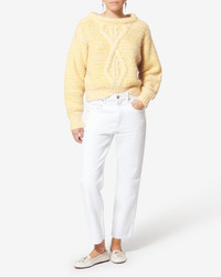 Alpaca and mohair cable knit sweater Wide round twisted neckline Wide round neckline Long sleeves with dropped armholes Straight cut and ribbed finish Style: PU0837FAD1L01IECYE DOROTA 61% alpaca, 20% super kid mohair, 17% polyamide, 2% wool Care & Sustainability Cold hand wash with suitable detergent For more details, see the instructions on the composition label
