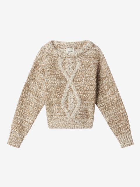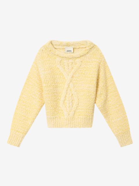 Alpaca and mohair cable knit sweater Wide round twisted neckline Wide round neckline Long sleeves with dropped armholes Straight cut and ribbed finish Style: PU0837FAD1L01IECBZ DOROTA 61% alpaca, 20% super kid mohair, 17% polyamide, 2% wool Care & Sustainability Cold hand wash with suitable detergent For more details, see the instructions on the composition label
