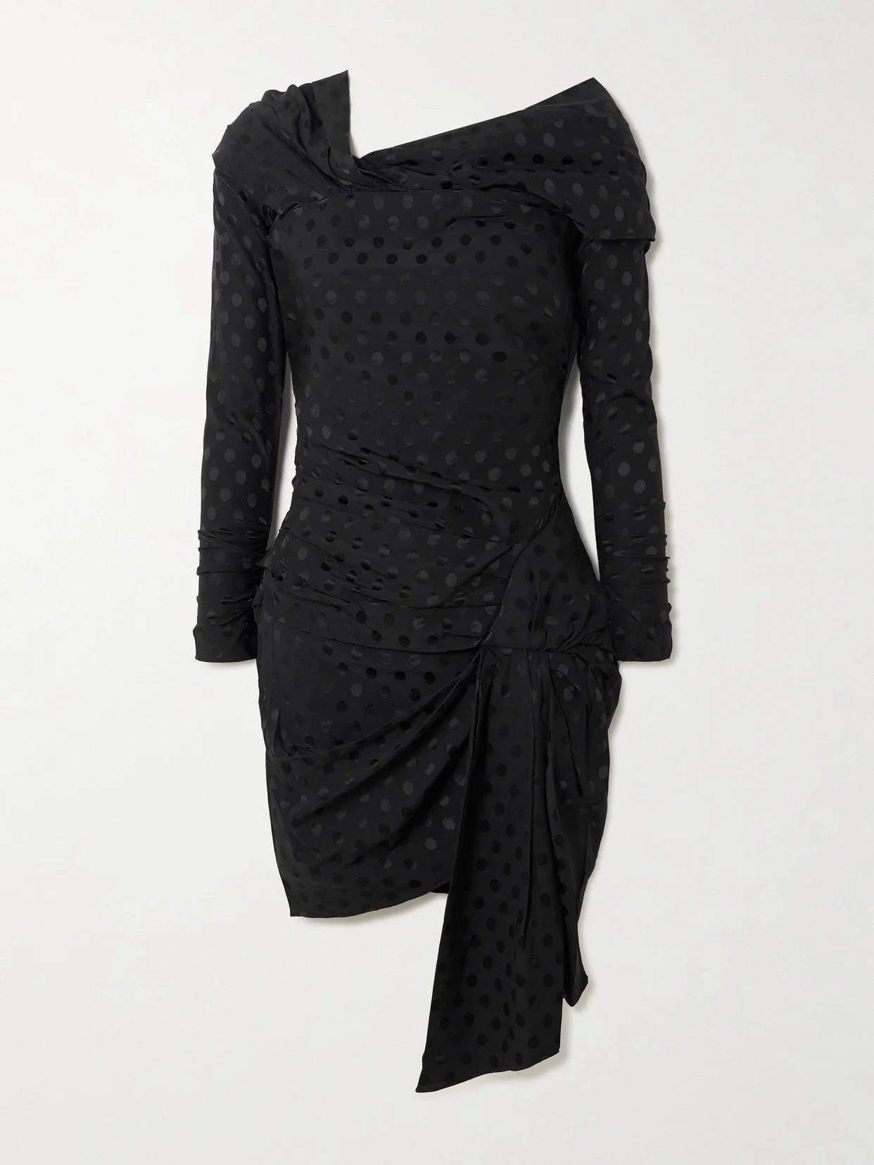 Asymmetric Draped Polka-dot Stretch-silk Dress