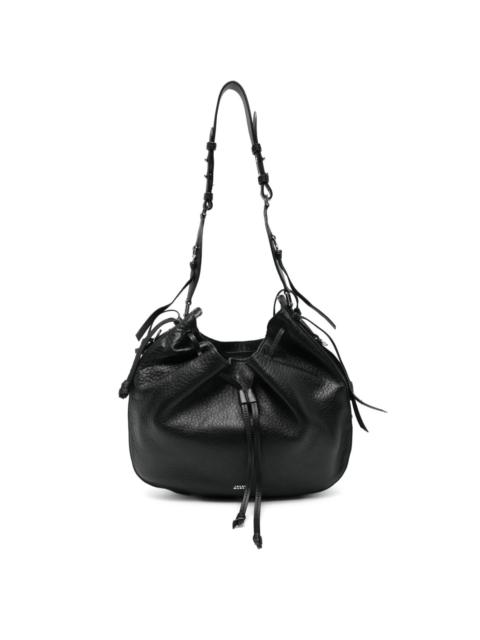 drawstring leather shoulder bag