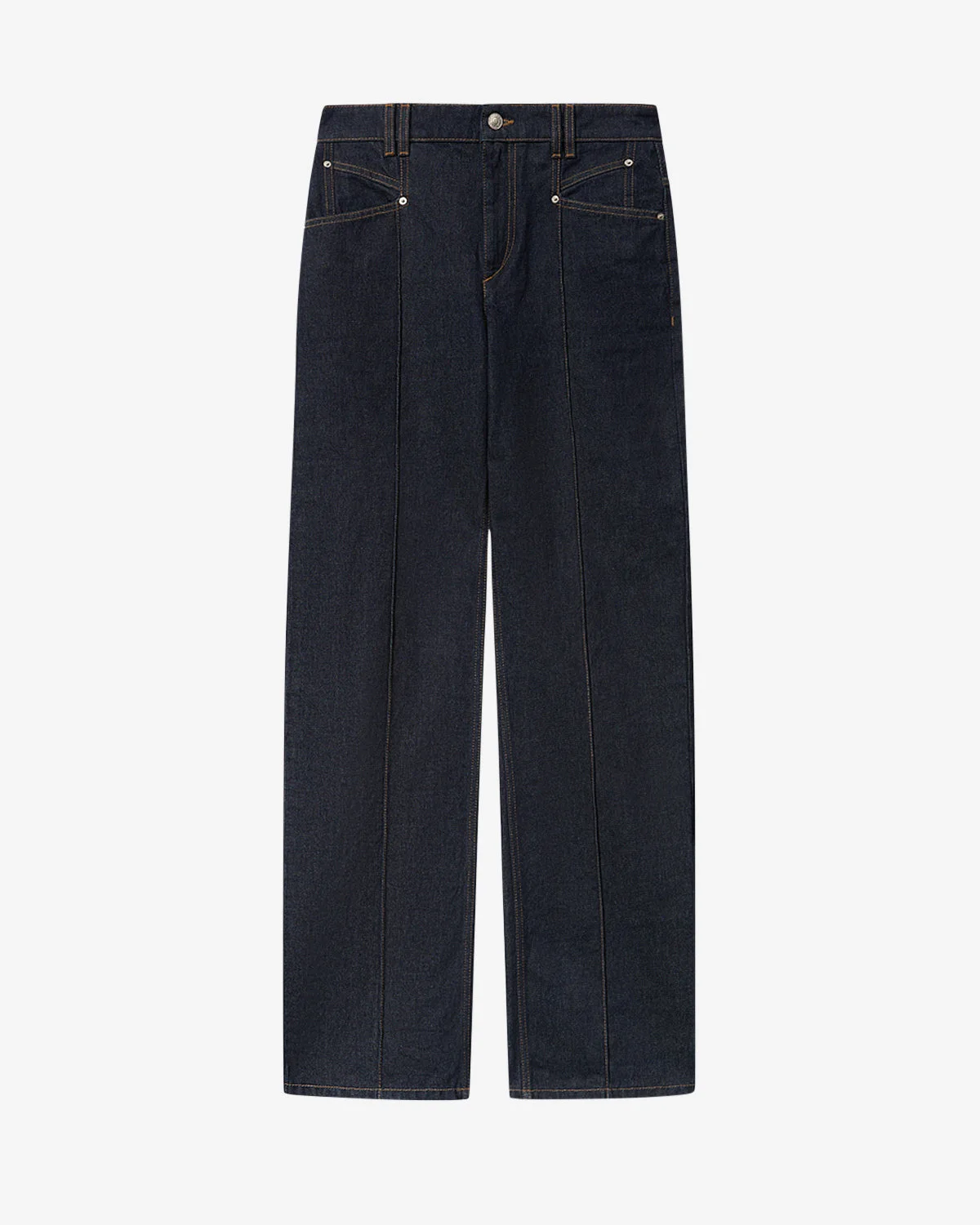Signature straight-leg cotton denim jeans Fitted waistband with double loops "Isabel Marant" engraved metal button and concealed zipper fly Side pockets with rivets and patch pockets on the back Crease down the legs Leather label in back with an embossed "Isabel Marant" logo Relaxed straight legs and medium-rise waist Style: PA0686FAD1H02I30DM DROLANE 100% cotton Care & Sustainability Machine wash on a gentle cycle, inside out and at a maximum temperature of 30°C For more details, see the instructions on the composition label the history and environmental impact of this product